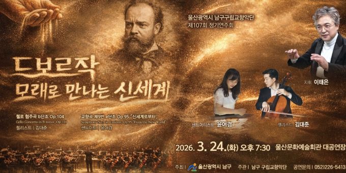 (포탈뉴스통신) 울산 남구는 오는 3월 24일 오후 7시 30분, 울산문화예술회관 대공연장에서 올해 첫 공연인 ‘울산 남구 구립교향악단 제107회 정기연주회’를 개최한다고 밝혔다.