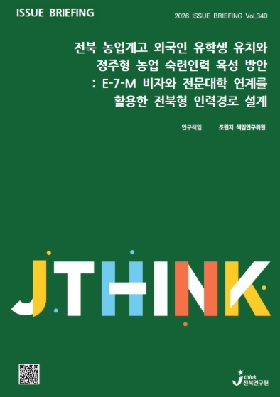 조원지 책임연구위원은 ‘전북이 선제적으로 농업계고 유학생-E-7-M-정주 모델을 설계해 정부에 제안한다면, 농업·농촌 인구위기 대응에서 전북형 선도 모델을 만들 수 있다’며, ‘이번 이슈브리핑을 계기로 농업 인력정책·농촌 인구정책·외국인 유학생 정책을 하나의 패스웨이 관점에서 통합적으로 논의하기를 바란다’고 말했다.