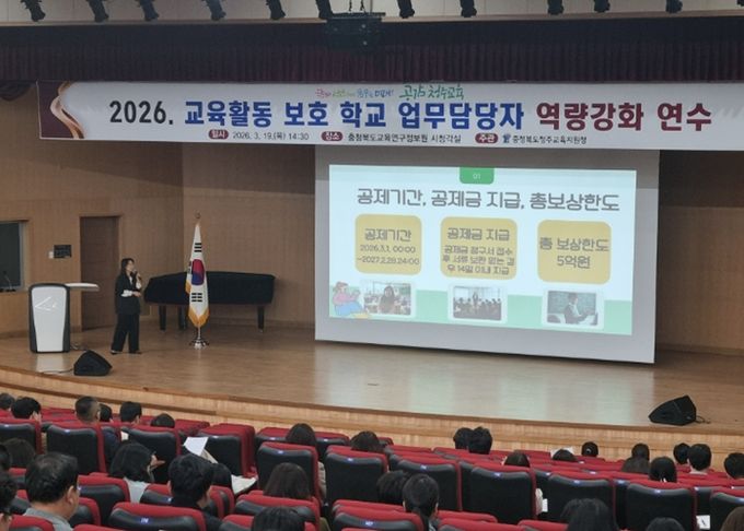 (포탈뉴스통신) 청주교육지원청은 3월 19일 충청북도교육연구정보원 시청각실에서 청주 지역 유·초·중·고·특수학교 등 교육활동보호 업무담당 교원 230여 명을 대상으로 '2026년 교육활동보호 학교업무담당자 역량강화 연수'를 실시했다.
