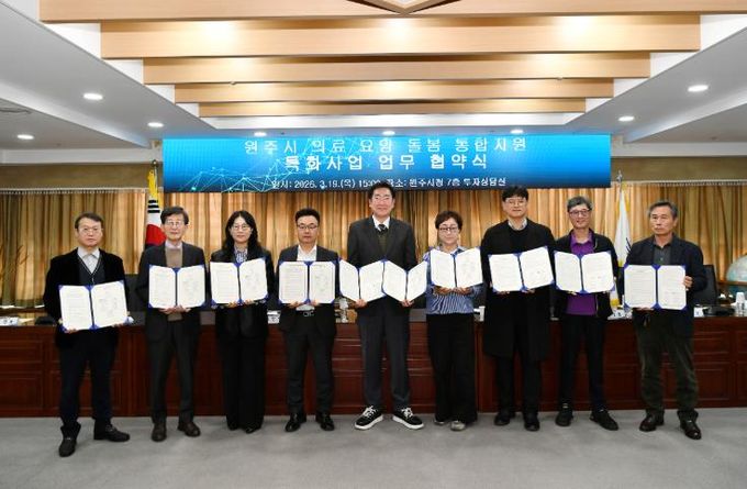 (포탈뉴스통신) 원주시는 지난 19일 시청에서 ‘의료·요양·돌봄 통합지원’ 특화사업 추진을 위한 업무협약식을 개최했다.