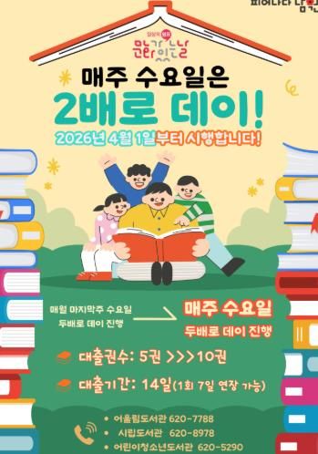 특히 이번 개편에서는 시민들의 독서 편의 증진을 위해 기존 10일이던 도서 대출 기간을 14일로 연장하고, 1회에 한해 7일을 추가로 연장할 수 있도록 하여 시민들이 더욱 여유롭게 독서를 즐길 수 있는 환경을 조성했다.
