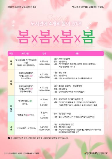 이와 함께 ▲8일부터 29일까지 인스타그램을 활용한 온라인 이벤트 ‘아직도 떨리나봄? 공포썰’과 2층 종합자료실 내 자유 필사 공간을 제공하는 이벤트 ‘아직도 안써봄? 필사’를 통해 지역주민의 참여를 독려할 예정이다.