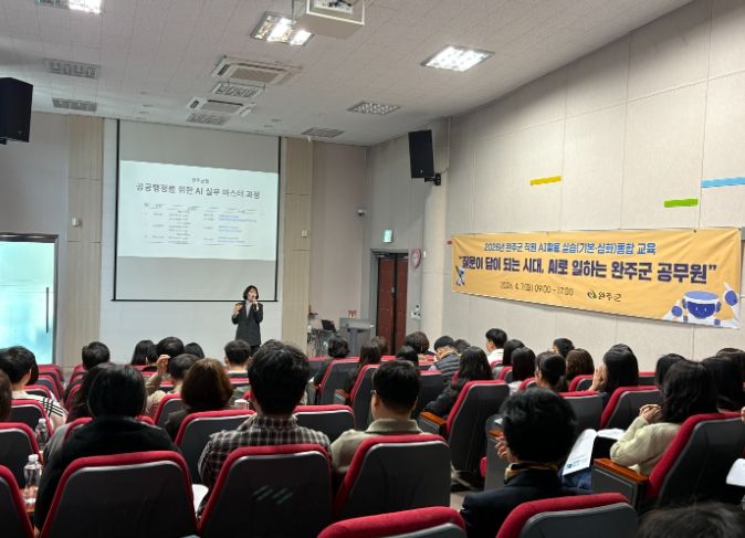 (포탈뉴스통신) 완주군이 인공지능(AI)을 행정 업무에 전격 도입해 스마트한 공직 문화를 조성하고자 실무 직원 190명을 대상으로 생성형 인공지능(AI) 활용 실습 교육을 7일 실시하며 행정 혁신에 속도를 내고 있다.