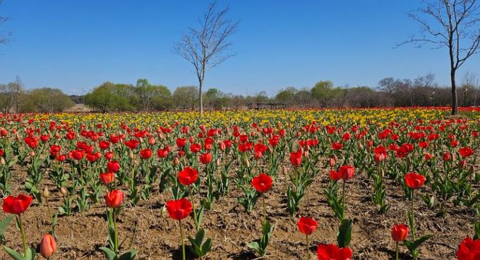 현재 노란색과 빨간색 튤립이 점진적으로 개화하고 있으며, 이달 중 단지 전체가 만개해 절정에 이를 것으로 예상된다.