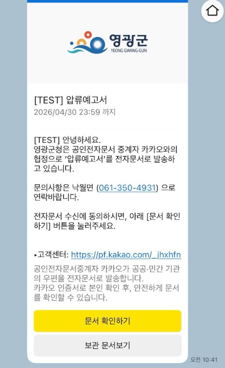 (포탈뉴스통신) 영광군은 4월 9일 지방세 30만 원 이상 고액체납자 767명을 대상으로 총 21억 1,300만 원의 체납액에 대해 「카카오 알림톡」으로 압류예고서를 발송했다고 밝혔다.