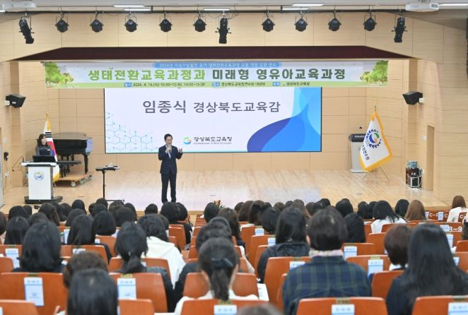 (포탈뉴스통신) 경북교육청은 16일 구미시에 있는 경상북도교육청연수원 대강당에서 도내 유치원과 어린이집 교원 500여 명이 참석한 가운데 ‘2026 지속가능발전 유아 생태전환교육과정 교원 역량 강화 연수’를 개최했다고 밝혔다.