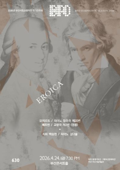 (포탈뉴스통신) 부산시립교향악단이 오는 4월 24일 오후 7시 30분, 부산콘서트홀에서 제630회 정기연주회 '에로이카(EROICA)'를 개최한다. 이번 공연은 고전주의의 균형에서 출발해 낭만주의의 확장으로 나아가는 흐름 속에서, 불안과 긴장을 넘어서는 인간의 의지를 조명하는 무대로 마련된다.