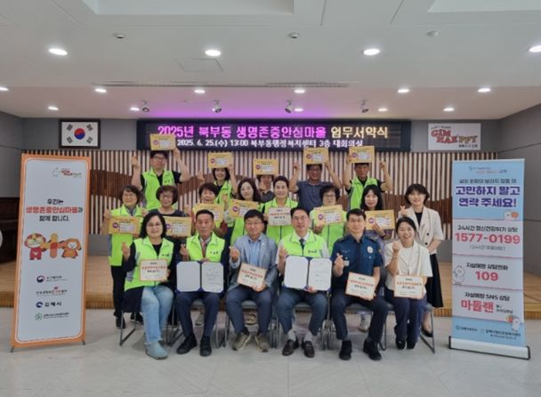 생명존중 안심마을은 지역사회 기관들이 자살 예방이라는 공동 목표를 가지고 협력해 안전망을 구축하는 읍·면·동 단위 마을 조성 사업이다. 2024년 내외동을 시작으로 2025년 북부동과 장유3동, 올해는 진영읍·활천동·삼안동·장유1동·장유2동까지 확대해 현재 총 8개 지역에서 운영되고 있다.