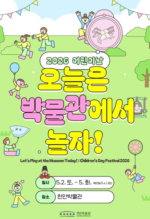 (포탈뉴스통신) 천안박물관은 내달 2~ 5일 어린이날 특별행사 ‘오늘은 박물관에서 놀자!’를 운영한다고 21일 밝혔다.
