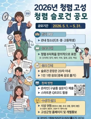 이번 공모전은 관내 청소년의 청렴 의식을 높이고, 미래세대 중심의 청렴문화를 지역 사회에 확산하기 위해 마련됐다.