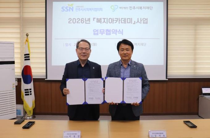 협약에 따라 ▲진주시복지재단은 원활하고 질 높은 복지아카데미 운영과 사례관리 교육을 위한 사업계획 수립과 재원 부담을 맡고 ▲진주시사회복지협의회는 2026년 복지아카데미 교육사업 수행과 사례관리자 역량 강화 및 네트워크 활성화를 위한 교육을 담당한다.