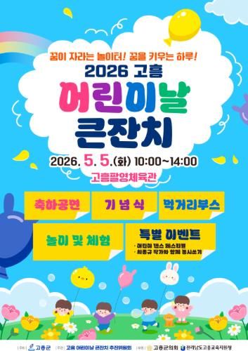 행사는 오는 5월 5일 고흥팔영체육관에서 진행되는 ‘2026 고흥 어린이날 큰잔치’ 일환으로 마련된다.