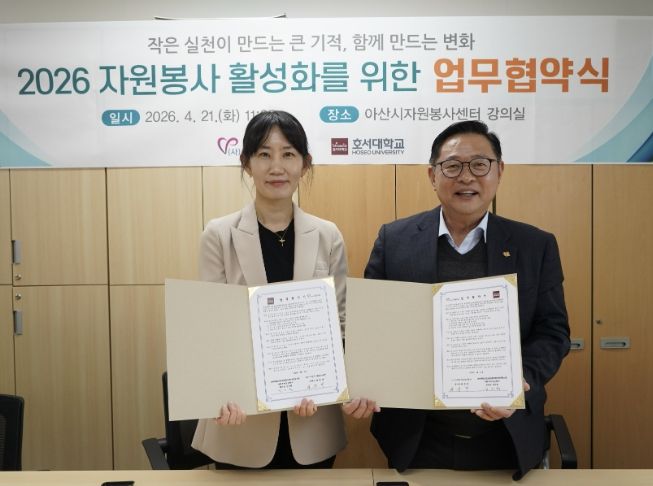 김리원 호서대학교 글로벌융합대학 미래융합스쿨 사회복지상담학과장은 “이번 협약으로 대학의 교육 자원과 지역사회의 자원봉사 현장이 유기적으로 연결되는 계기가 마련됐다”며 “앞으로도 다양한 세대가 함께 참여하는 자원봉사 모델을 구축해 따뜻한 아산시를 만드는 데 앞장서겠다”고 말했다.