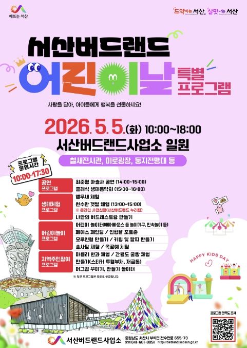 (포탈뉴스통신) 충남 서산시는 오는 5월 5일 ‘서산버드랜드 어린이날 특별프로그램’을 운영한다고 밝혔다.