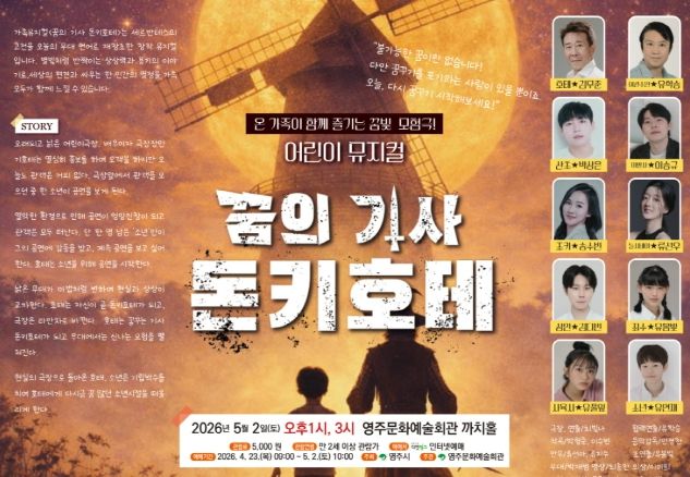 (포탈뉴스통신) 영주시는 오는 5월 2일 오후 1시와 오후 3시, 두 차례에 걸쳐 영주문화예술회관 까치홀에서 어린이 뮤지컬 ‘돈키호테’를 선보인다.