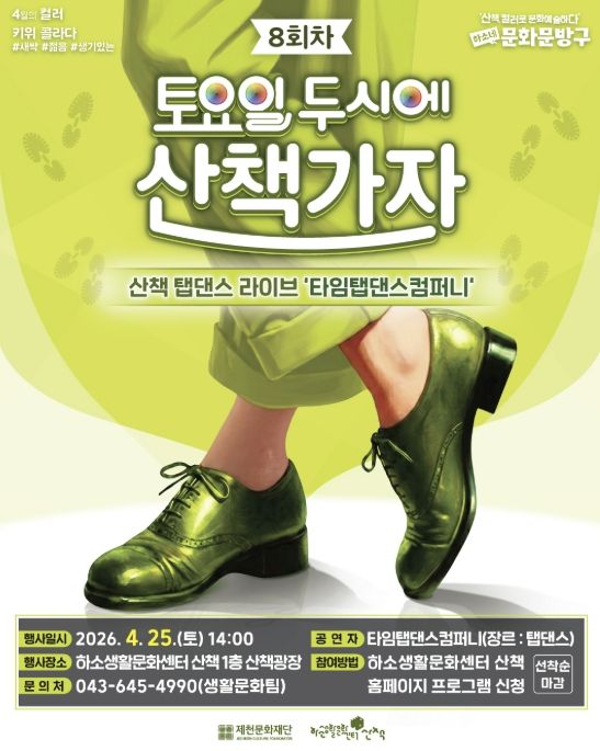 (포탈뉴스통신) 제천문화재단이 운영하는 하소생활문화센터 ‘산책’에서 매주 토요일 시민들과 함께하는 문화예술 프로그램 '토요일 두시에 산책가자'의 여덟 번째 무대로 ‘탭댄스 공연’을 선보인다.