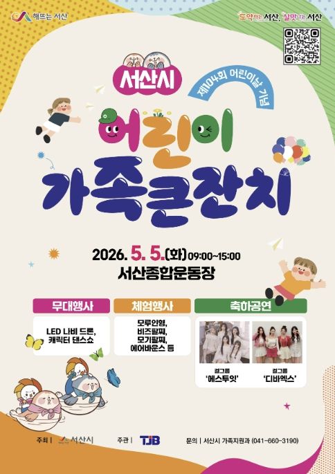 (포탈뉴스통신) 충남 서산시가 제104회 어린이날을 맞아 어린이 가족 큰잔치를 개최한다.