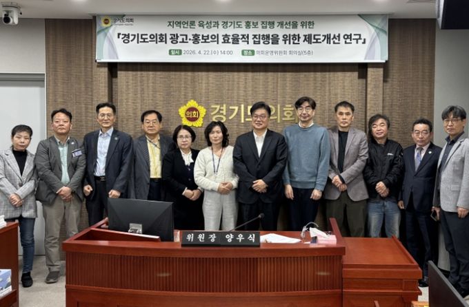 (포탈뉴스통신) 경기도의회 의회운영연구회(위원장 양우식)는 지난 22일 의회운영위원회 회의실에서 '경기도의회 광고·홍보의 효율적 집행을 위한 제도개선 연구' 용역 중간보고회를 개최했다.
