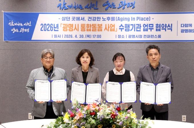 시는 30일 시청 컨퍼런스룸에서 ‘2026년 광명시 통합돌봄 사업’ 수행기관 3곳과 업무협약을 체결했다.