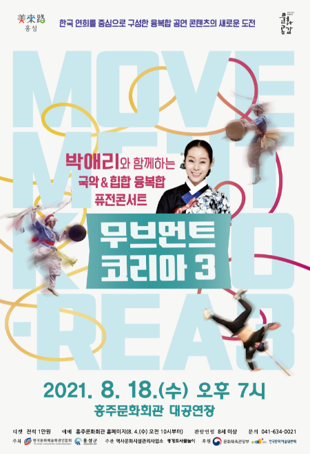 (포탈뉴스) 홍성군은 여름방학과 휴가철을 맞아 부모님과 자녀들이 함께 즐길 수 있는 공연인 ‘박애리와 함께 하는 국악&힙합 융ㆍ복합 퓨전콘서트 '무브먼트코리아 3'를 8월 18일 오후 7시에 개최한다.