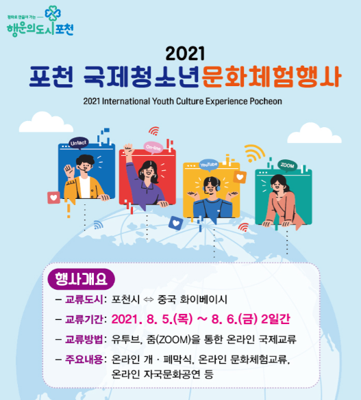 한편, 2021년 포천 국제청소년문화체험 행사는 포천시청 유튜브 채널를 통해 실시간 중계된다.