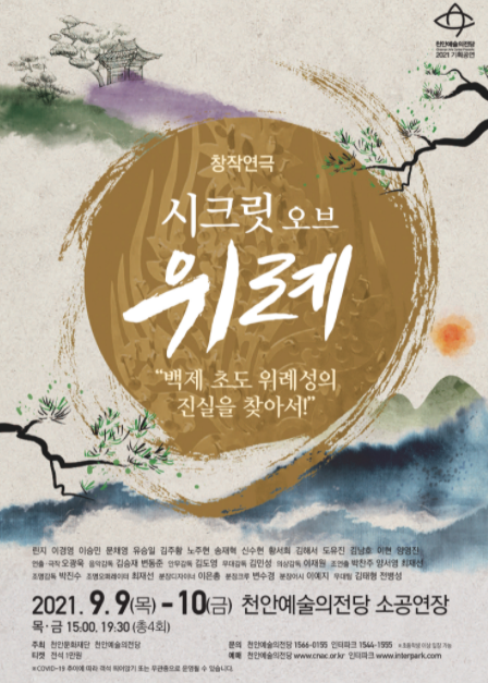 (포탈뉴스) 천안문화재단은 창작연극 ‘시크릿 오브 위례(부제: 백제초도 위례성의 진실을 찾아서!)’를 9월 9일과 10일 이틀간 오후 3시, 오후 7시 30분 총 4회에 걸쳐 천안예술의전당 소공연장에서 선보인다.