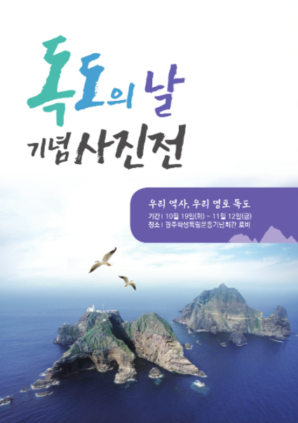 (포탈뉴스) 광주학생독립운동기념회관이 ‘독도의 날(10월25일)’과 ‘학생독립운동기념일(11월3일)을 맞아 오는 19~11월12일 회관 로비에서 ’우리 역사, 우리 영토 독도‘를 주제로 ’독도의 날 기념 사진전‘을 개최한다.