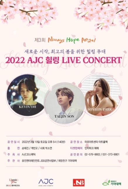 AJC 코스메틱 주최로 함께하는 '2022 AJC 힐링 Live'는 오는 3월 19일 마포아트센터에서 140분간 진행될 예정이다.