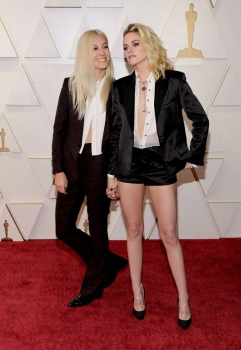 크리스틴 스튜어트의 생애 첫 아카데미 여우주연상 수상 여부만큼이나 그의 레드카펫 룩이 기대를 모았고, 그는 파격적인 룩으로 2022년 아카데미 시상식 레드카펫을 뜨겁게 달궜다. 크리스틴 스튜어트는 샤넬 새틴 크롭 턱시도와 흰색 버튼업 셔츠 그리고 블랙 쇼트 팬츠를 입고 레드카펫에 입장해 당당하고 아름다운 미소를 지어 보여 플래시 세례를 받았다. 또한 크리스틴 스튜어트는 약혼자이자 시나리오 작가인 딜런 마이어(Dylan Meyer)와 커플룩으로 함께 레드카펫에 등장해 더욱 뜨거운 스포트라이트를 받았다.