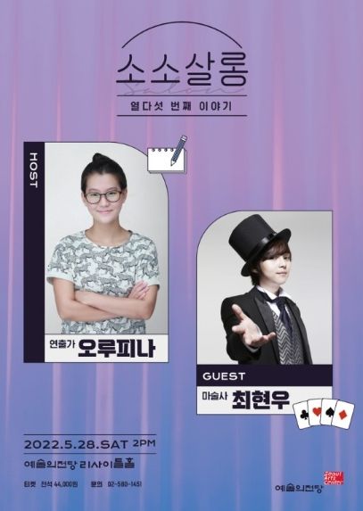 (포탈뉴스) 예술의전당의 5월 '소소살롱'에선 뮤지컬 연출가 오루피나와 마술사 최현우의 만남이 펼쳐진다.