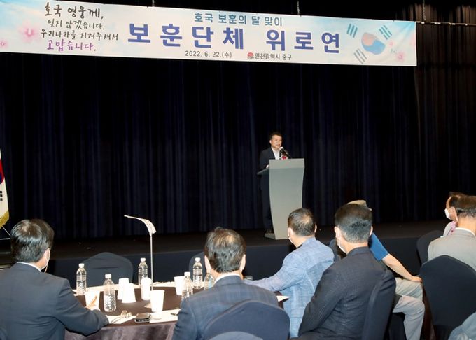 (포탈뉴스) 인천 중구는 호국 보훈의 달을 맞아 지난 22일 보훈단체 회원 200여 명을 초청해 보훈단체 위안행사를 개최했다.