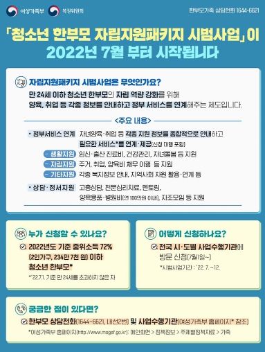 (포탈뉴스) 청소년 한 부모 자립지원 패키지 시범사업이 2022년 7월 시작됩니다.