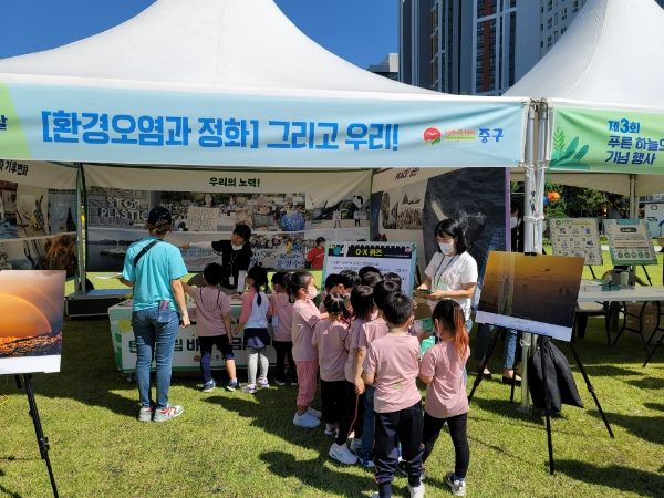 중구에서는 제3회 푸른 하늘의 날을 맞아 인천시청 애뜰광장에서‘'환경오염과 정화', 그리고 우리’라는 테마로 기후변화 사진전시, 환경관련 퀴즈 이벤트를 비롯해 탄소중립 및 환경 홍보 캠페인을 실시하여 환경의 중요성을 알리고 기후변화에 대한 이해에 관심을 높였다.