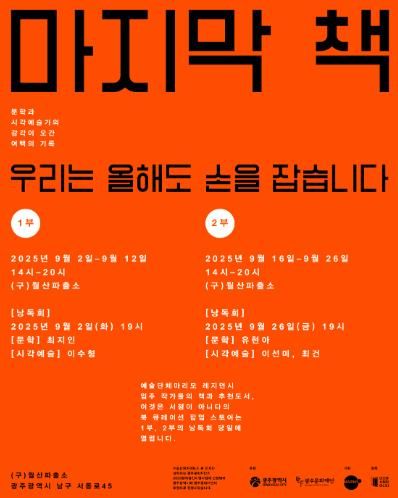 (포탈뉴스통신) 광주문화재단은 지역문화예술특성화 창작공간프로그램지원 사업 선정 단체인 예술단체 마리모가 입주작가 결과보고전《마지막 책–우리는 올해도 손을 잡습니다》를 오는 9월2일부터 9월26일까지 (구)월산파출소(남구 서동로)에서 개최한다고 밝혔다.