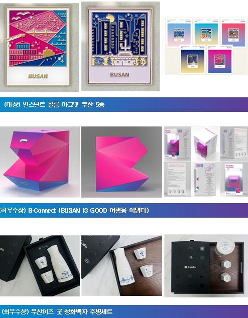 이 외에도 ▲‘부산이즈굿(busan is good)’ 오브제 화분 ▲테트라포트 열쇠고리(키링) ▲한복 입은 ‘부기’ 열쇠고리(키링) 등 작품성이 돋보이는 상품이 우수상으로 뽑혔다.