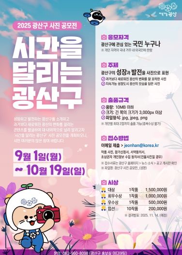 공모전 관련 자세한 내용은 홍보실 미디어팀으로 문의하면 되며, 광산구 누리집과 공식 누리소통망(SNS)에서도 확인할 수 있다.
