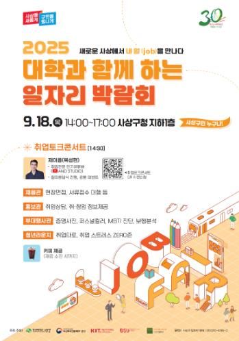 (포탈뉴스통신) 부산 사상구는 청년 및 구직자들에게 다양한 고용 정보를 제공하고 지역 기업의 인재 채용을 지원하기 위해 '2025 대학과 함께하는 일자리박람회'를 오는 9월 18일 오후 2시부터 5시까지 사상구청 지하 1층에서 개최한다.