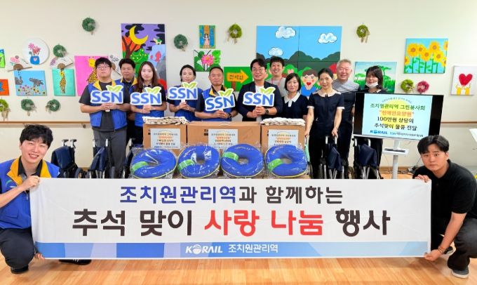(포탈뉴스통신) 19일 한국철도 대전충남본부 조치원관리역은 세종특별자치시사회복지협의회와 함께 민족 고유의 명절인 추석을 앞두고 세종시 조치원읍에 위치한 세종천애안요양원을 방문하여 따뜻한 사회공헌을 실천했다.