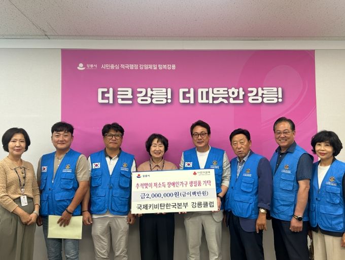 (포탈뉴스통신) 국제키비탄한국본부 강릉클럽(회장 김건휘)이 추석을 앞두고 저소득 장애인 가구의 따뜻한 명절나기를 지원하기 위해 200만 원 상당의 생필품을 기탁했다.