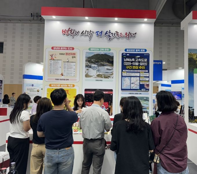 이번 의령군 홍보관에서는‘청년이 꿈꾸는 도시’, ‘매력있는 교육문화’, ‘풍요로운 활력 경제’를 주제로 청년지원정책과 미래교육원, 남북6축 고속도로 연장 추진 등을 소개했고, 의령군 우수 정책 안내와 주요 관광지·음식 등 의령군을 전방위적으로 홍보했다.