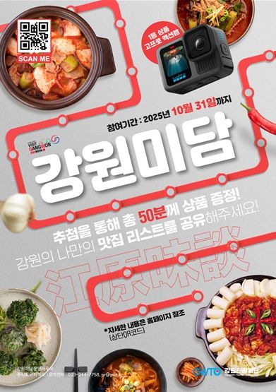 강원 미식 챌린지는 지역 주민과 관광객이 직접 참여해 강원의 맛집, 카페, 체험 프로그램 등을 추천하고, 실제 방문 경험과 에피소드를 공유하는 참여형 캠페인이다. 재단은 챌린지를 통해 축적된 데이터와 참여 결과를 바탕으로 강원 미식 50선을 구축할 계획이다.