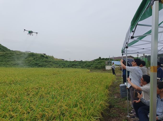 시연회에서는 드론방제기의 안전한 사용을 위한 교육과 함께 비산저감형 AI 노즐 드론방제기를 활용한 정밀 살포기술을 현장에서 선보였다. 참가한 농업인들은 높은 관심을 보이며 호응했다.