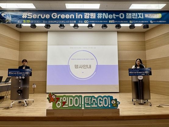 (포탈뉴스통신) 강원특별자치도·삼척·원주·춘천 탄소중립 지원센터(센터장 김진영·김주영·전용한·임성린)는 19일, 강원대 정강홀에서 도내 공무원 100여 명을 대상으로 탄소중립 퀴즈대회 '#Serve Green in 강원 #Net-0 챌린지」를 개최했다고 밝혔다.