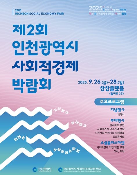(포탈뉴스통신) 인천광역시는 오는 9월 26일부터 28일까지 3일간, 인천 중구 상상플랫폼 웨이브홀에서 ‘제2회 인천광역시 사회적경제박람회’를 개최한다고 밝혔다.