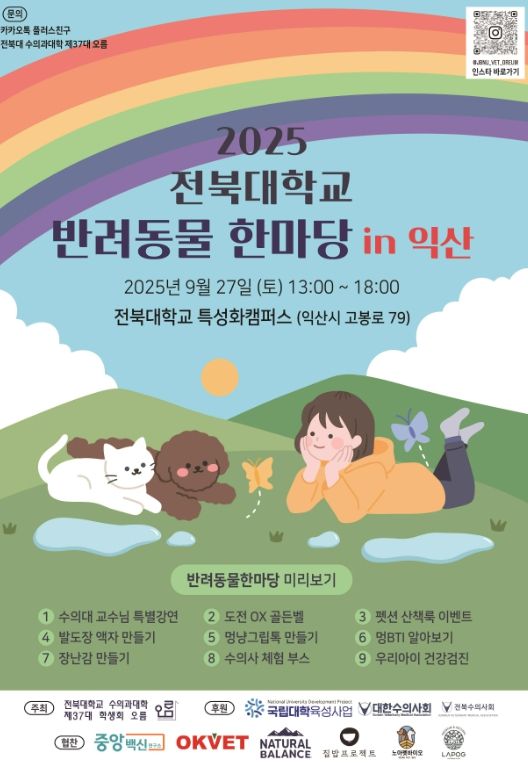 익산시는 '2025 전북대학교 반려동물 한마당'이 오는 27일 오후 1시 전북대학교 익산특성화캠퍼스에서 다채롭게 펼쳐진다고 22일 밝혔다.