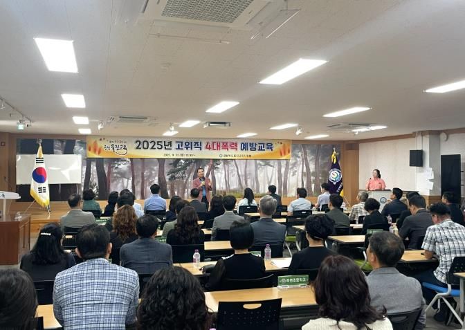 (포탈뉴스통신) 경상북도울진교육지원청은 2025년 9월 22일, 3층 대회의실에서 고위직 대상 4대폭력(성희롱, 성폭력, 성매매, 가정폭력) 예방교육을 시행했다.