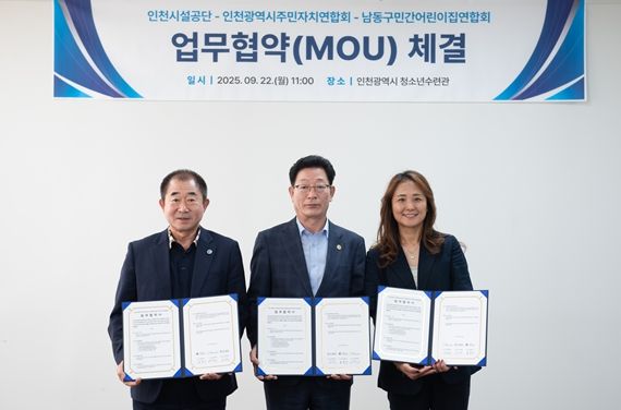 (포탈뉴스통신) 인천시설공단 인천청소년수련관은 22일 인천광역시주민자치연합회, 남동구민간어린이집연합회와 함께 청소년의 문화·예술 활동 기회 확대와 지역 내 공연장 대관장소 부족 문제 해소를 위한 업무협약을 체결했다.
