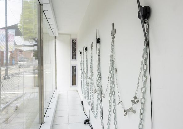 미디어월을 활용한 첫 번째 전시를 선보이는 얄루(Yaloo) 작가는 투명 디스플레이의 장점을 적극적으로 살려 작업했 '신인호 프롬 미추홀 Shininho From Meetchu Hole'이라는 작품은 금속 절단 조형물, 홀로그램 팬 등 설치 요소에 3D 애니메이션 영상이 결합한 형태다.