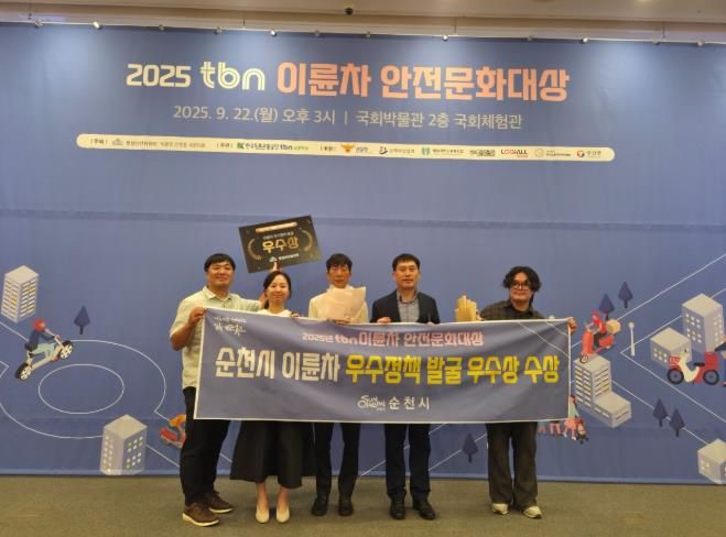 (포탈뉴스통신) 순천시는 지난 22일 서울 국회박물관에서 열린 '2025 tbn 이륜차 안전문화대상' 시상식에서 이륜차 우수정책 발굴 부문 우수상을 수상했다고 밝혔다.