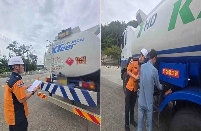 주요 점검 사항은 ▲위험물 운송자 및 운반자 자격 취득 여부 ▲실무교육 이수 여부 ▲이동탱크저장소 안전 기준 준수 여부 ▲지정수량 이상 위험물 운반 차량의 운송·운반 기준 준수 여부 등이다.
